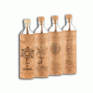 The finished protective cork sleeves are delivered to our company by express mail, where different designs are engraved into them. The Flower of life was our first motif, which quickly became very popular. We soon added “The New Beginning” motif to the collection, and also this year the “Emoto Peace Project” Flaska bottle depicting the crystal “Love and Gratitude”. Cork Flaska bottles are also becoming increasingly popular in the segment of personalized Flaska bottles due to their message and their practical value.